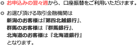 当社並びに金融機関による預金口座振替の開始時期は、当社での手続き完了後とします。
